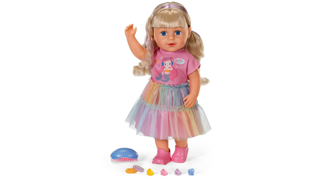 Păpușa Baby Born Carla este o prietenă colorată și fermecătoare care inspiră jocuri creative de coafare.