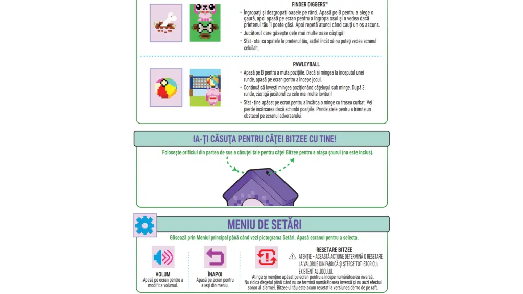 Fiecare cățel comunică cu cel de lângă el. Joacă 3 jocuri împreună sau atinge ecranul pentru a te alătura prietenului tău de pe ecran.