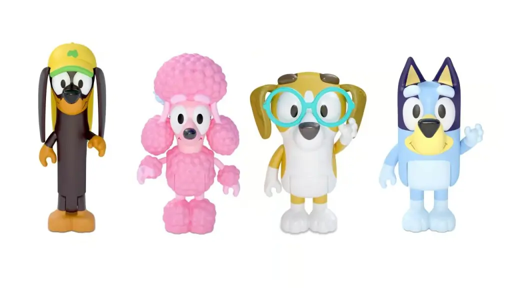 Acest set de 4 piese îi include pe Bluey și trei dintre prietenii ei: Snickers, Honey și Coco!