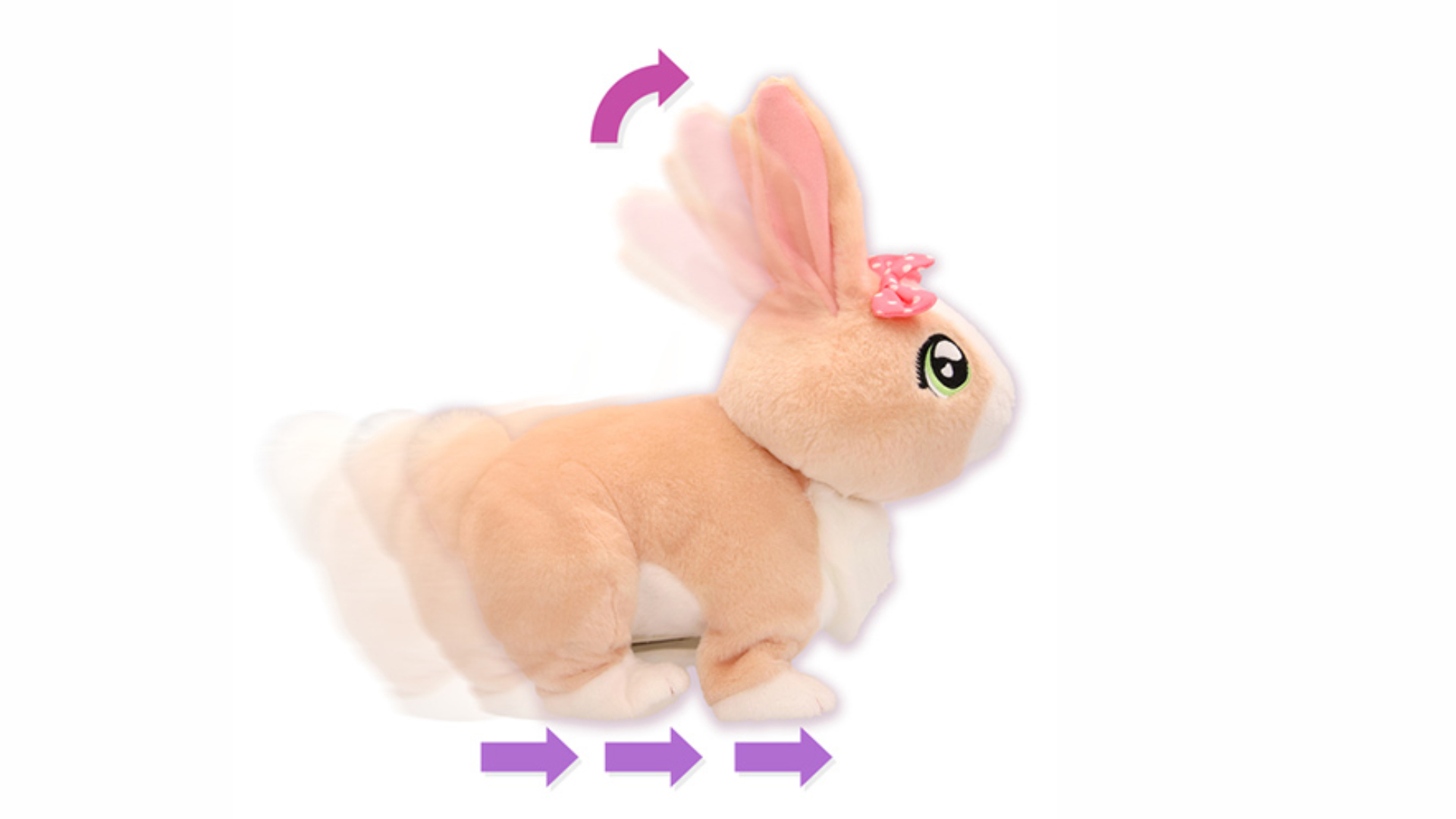 Acest iepuraș maro cu două fundițe roz adorabile scoate tot felul de sunete drăguțe când îl îmbrățișezi. Și privește-i urechile cum se mișcă în timp ce sare prin cameră, exact ca un iepuraș adevărat!