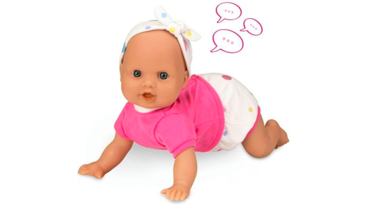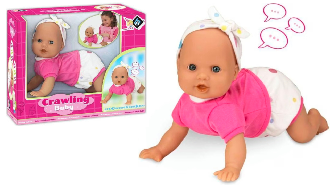 Păpușa se poate târâ, râde și vorbi, ceea ce o face un companion distractiv pentru cei mai tineri utilizatori.