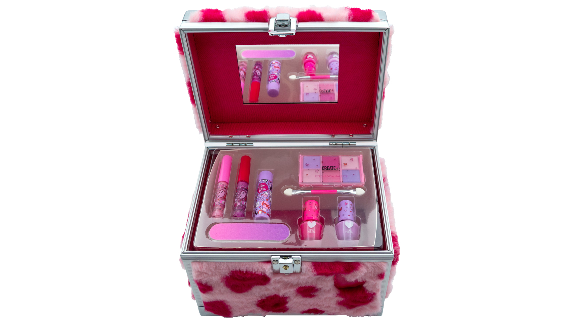 Descoperă magia frumuseții cu trusa de machiaj Create It! Love Inimioare pufoase.