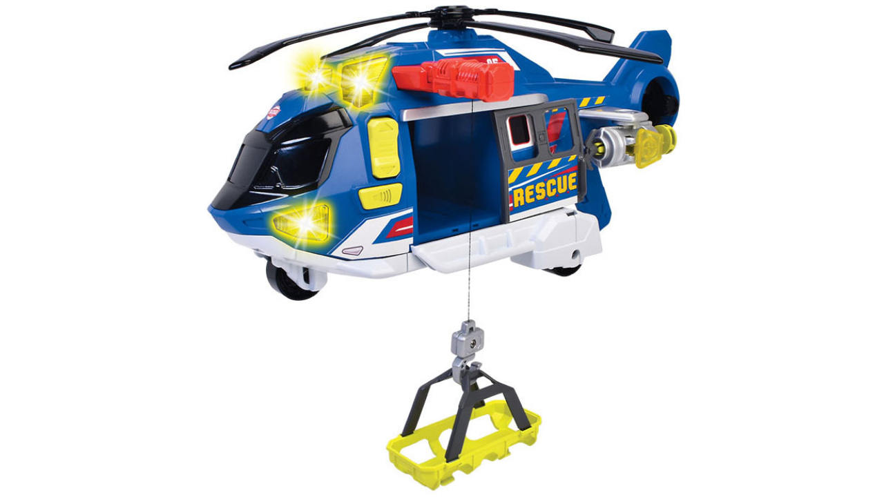 Minunatul elicopter de la Dickie Toys este ca unul adevărat, este pregătit să pornească în următoarea sa misiune de salvare și să facă jocurile mai mult decât grozave.