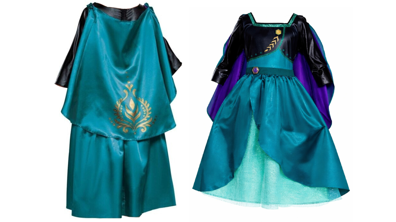 Acest costum are o pelerină detașabilă, o panglică strălucitoare pe decolteu, o fustă cu mai multe straturi și o cataramă mulată cu blazonul Arendellei pe talie.