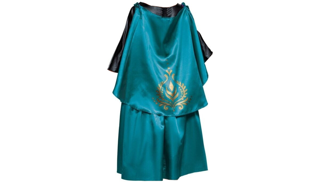 Acest costum are o pelerină detașabilă, o panglică strălucitoare pe decolteu, o fustă cu mai multe straturi și o cataramă mulată cu blazonul Arendellei pe talie.