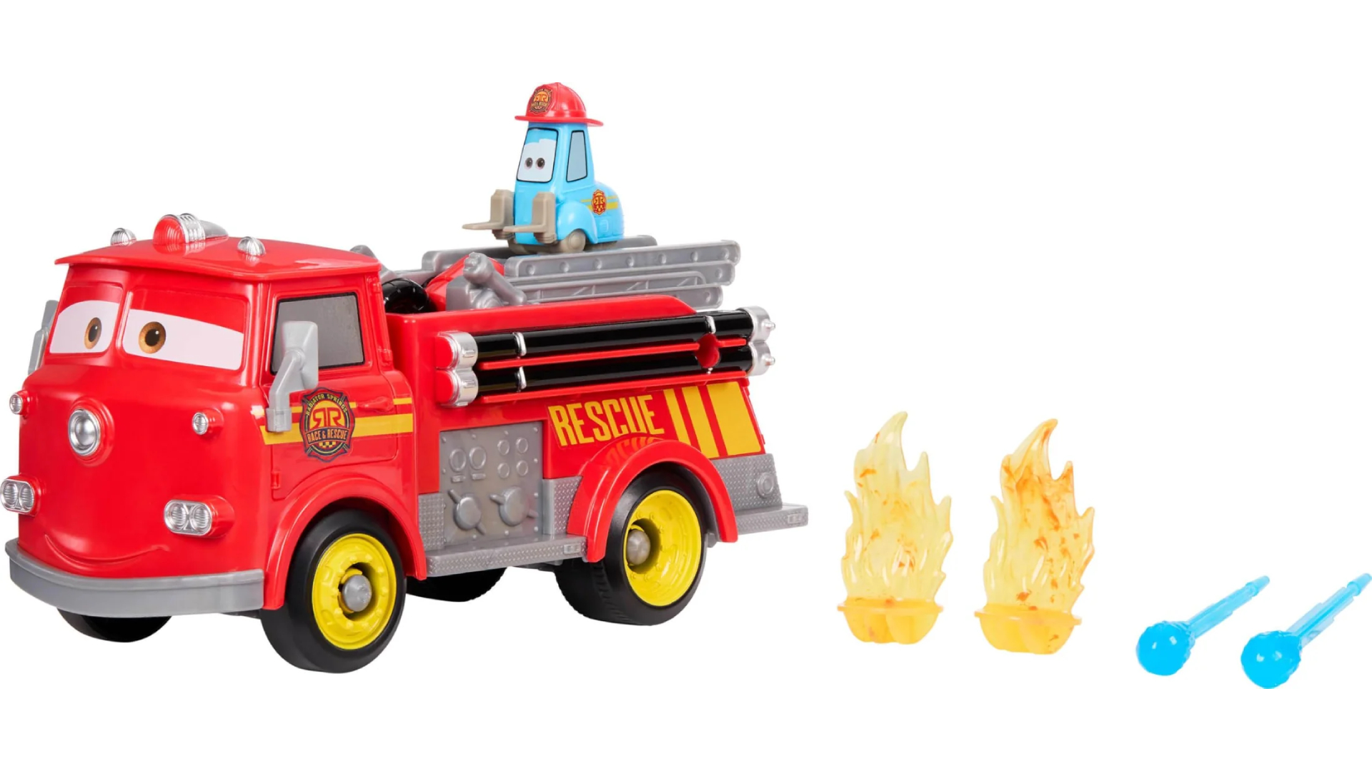 Acest camion de pompieri de jucărie la scară largă aduce la viață personajele îndrăgite, oferind aventuri palpitante de pompieri direct din Radiator Springs.