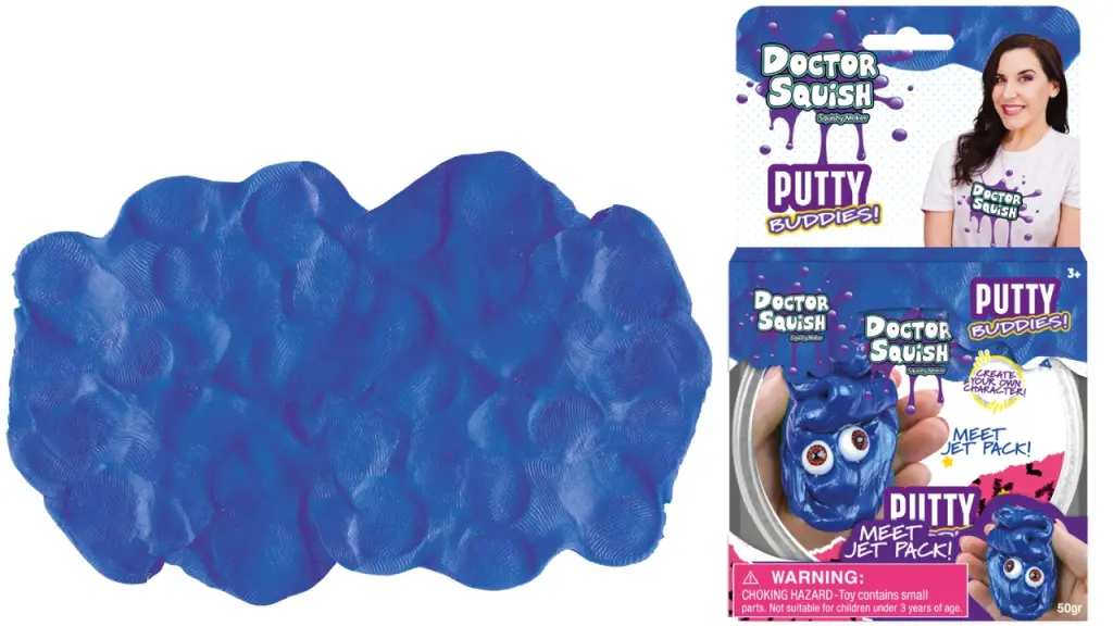 Fiecare cutie Jet Pack Putty Buddies conține plastilină vibrantă, modelabilă, gata să fie transformată în propriile tale personaje. Plastilina albastră închisă nu este doar impresionantă din punct de vedere vizual, ci și incredibil de satisfăcătoare atunci când o strângi și o întinzi.