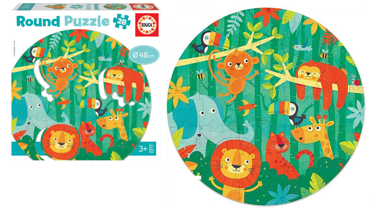 Setul Educa Round Puzzle The Jungle (80-18906) este un puzzle educativ destinat copiilor mici, cu o tematică veselă din junglă.