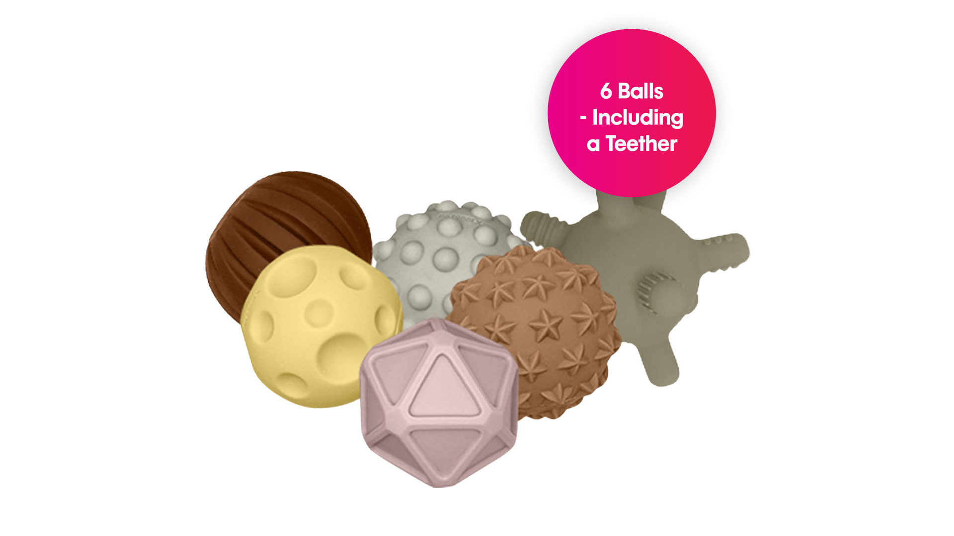 Ideale pentru joaca pe burtica si pentru infasurati. Aceste mingi mini au forme si texturi diverse, care stimuleaza dezvoltarea senzoriala si motora a bebelusilor si copiilor mici.