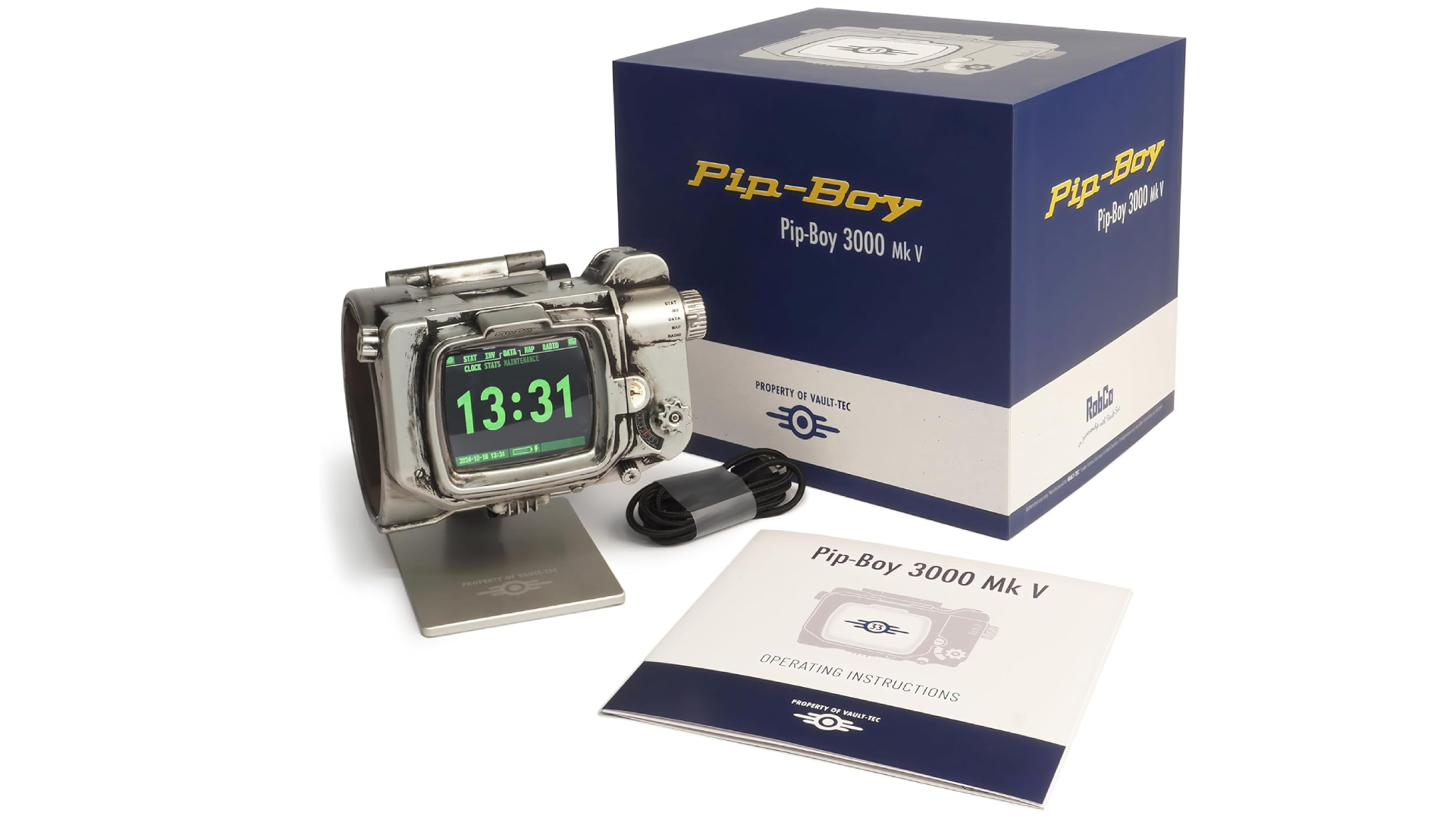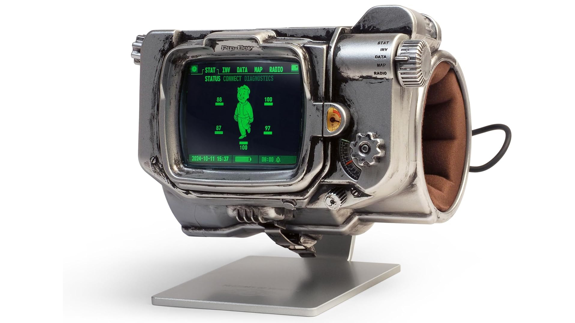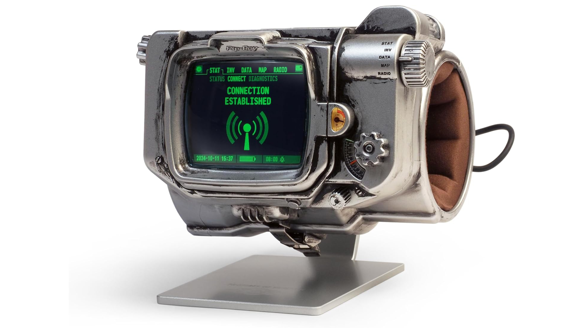 Creat folosind geometria serialului TV și realizat într-un amestec de metal turnat sub presiune și ABS turnat prin injecție, Pip-Boy are un ecran LCD TFT funcțional care afișează animații.
