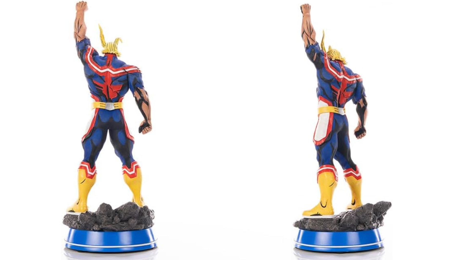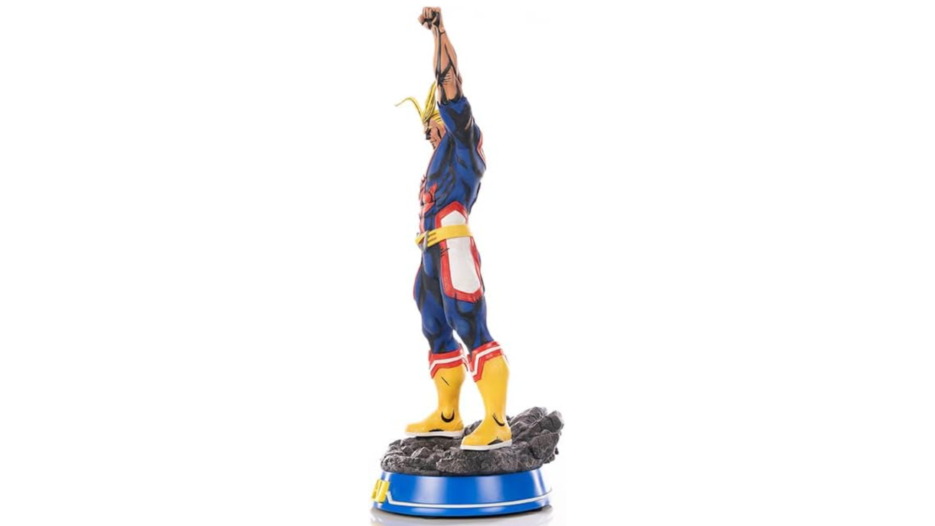 În această statuie glorioasă din rășină, All Might ține pumnul ridicat în aer. Fanii anime-ului vor recunoaște imediat această poziție iconică de victorie.