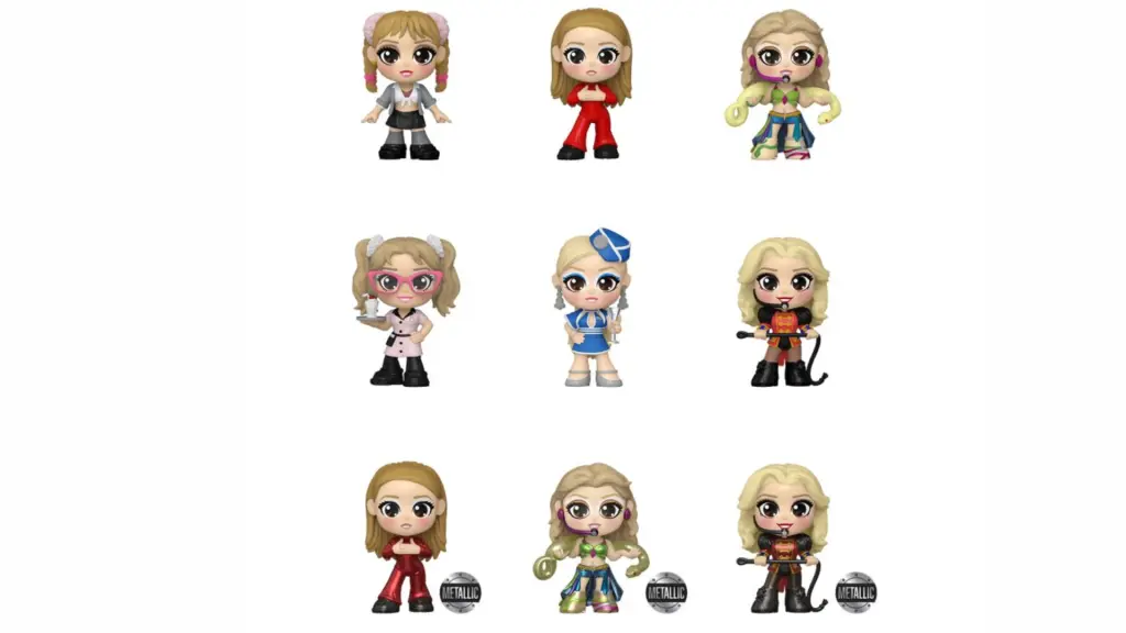 Fiecare figurină o reprezintă pe Britney Spears într-una dintre ținutele sale iconice din videoclipuri.