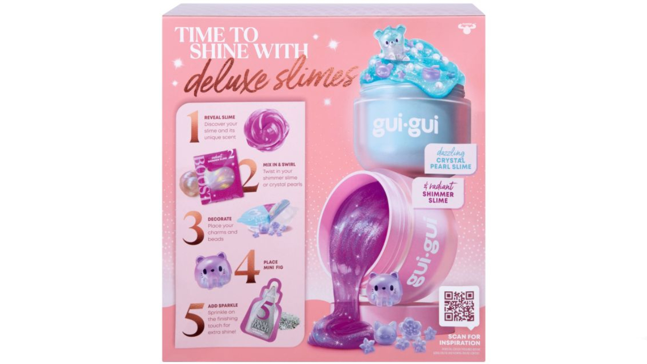 Treci la nivelul următor în jocul cu slime și conferă-i un aspect strălucitor cu pachetul exclusiv Gui Gui Shimmer Deluxe Duo Pack.