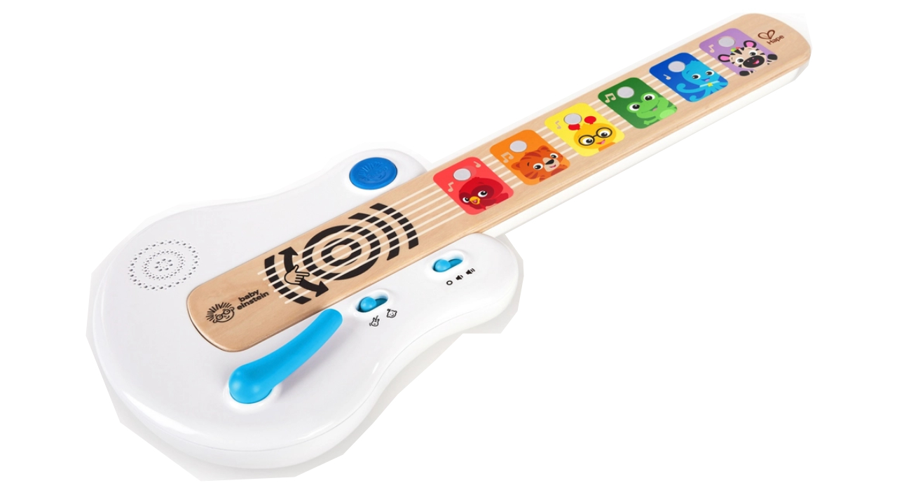Prima sesiune de improvizație a bebelușului este plină de descoperiri muzicale cu chitara Hape Strum Along Songs Magic Touch de la Baby Einstein.