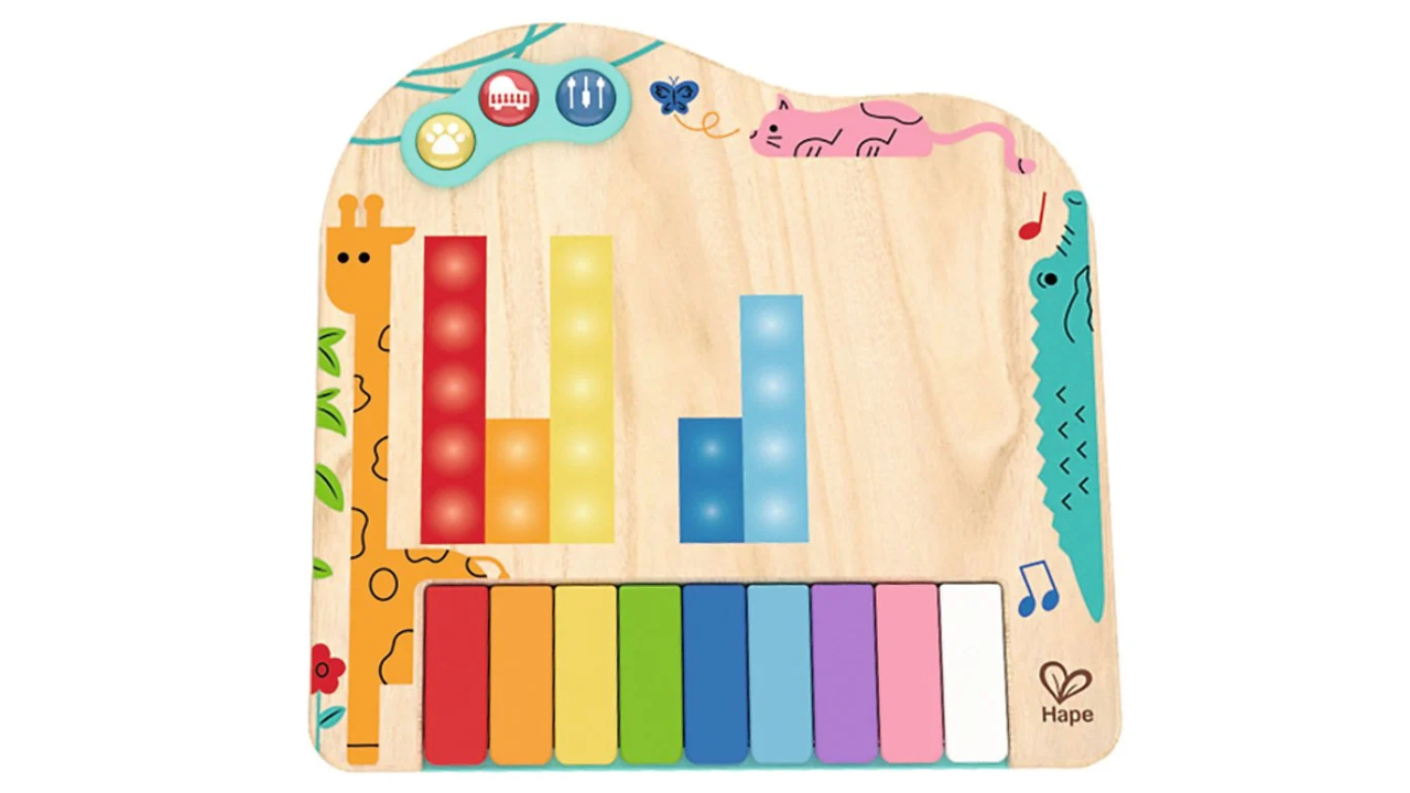 Acest pian interactiv combină melodii clasice cu elemente vizuale moderne, pixelate. Este o oportunitate perfectă pentru copilul tău de a începe să exploreze și să-și dezvolte interesul pentru muzică.