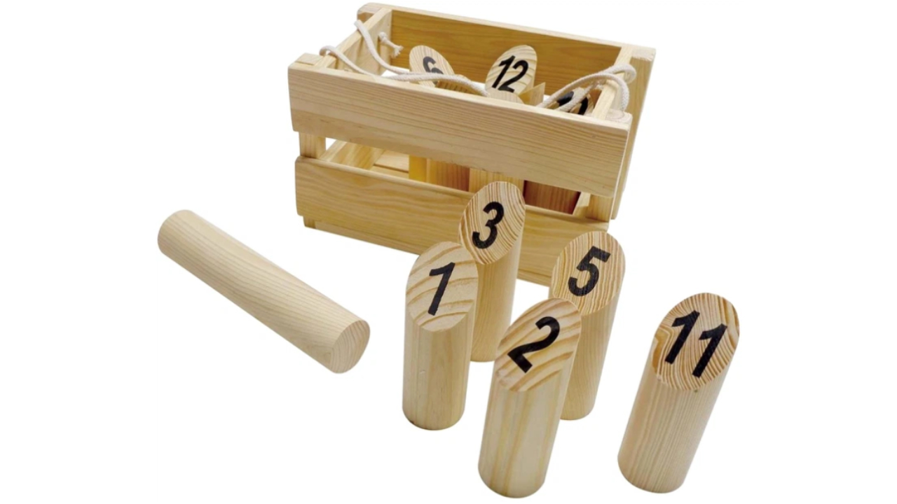 Scopul este să răstorni popicele de lemn numerotate aruncând bastonul de lemn spre popice sub braț.