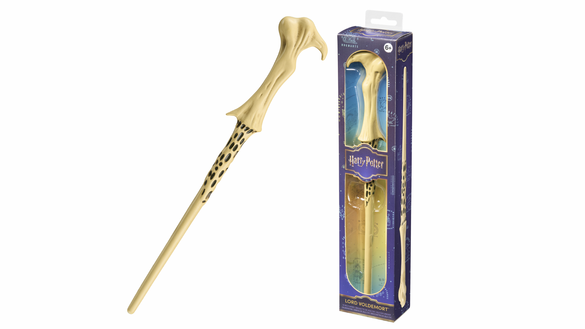 Această versiune de baghetă magică a lui Lord Voldemort, cu o culoare unică de os și mâner în formă de gheară, măsoară aproximativ 30 cm în lungime.
