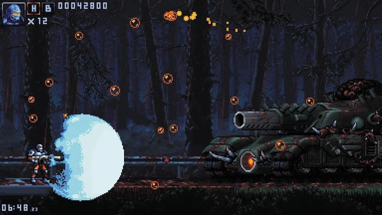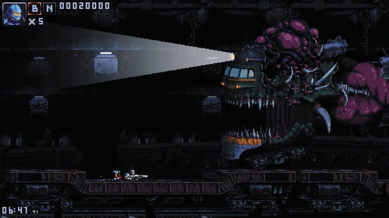 Lupte cu șefi în mai multe faze: Ion Meat aduce un omagiu titlurilor clasice run-and-gun din trecut, cu lupte intense cu șefi împărțite în mai multe faze.