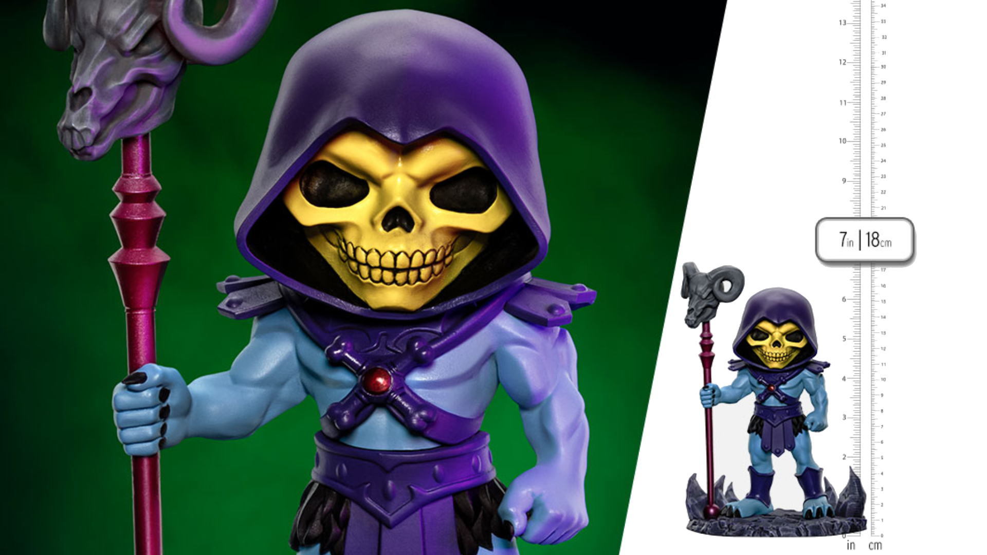 Frumos stilizată, cu proporții caricaturale și o vopsea aplicată elegant, figurina din vinil Skeletor MiniCO de la Iron Studios prezintă direcția artistică unică a acestei serii de neuitat într-o strălucire nou imaginată.