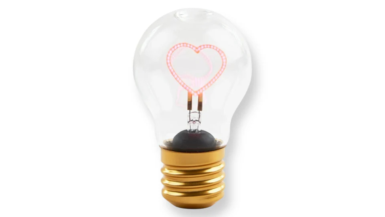 Adaugă o notă de magie și culoare camerei tale cu această lampă decorativă în formă de bec, cu o inimă în interior.