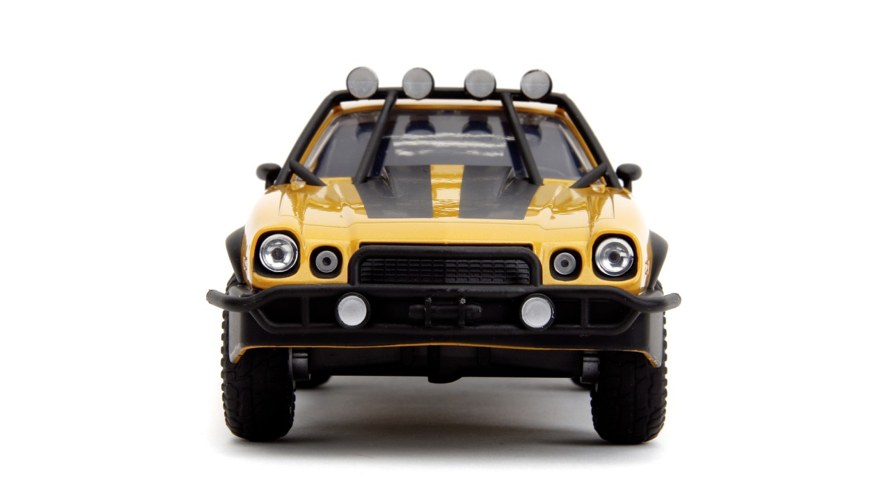Mașină metalică Bumblebee 1977 Chevy Camaro din filmul Transformers Rise of the Beasts, cu uși și portbagaj care se deschid.