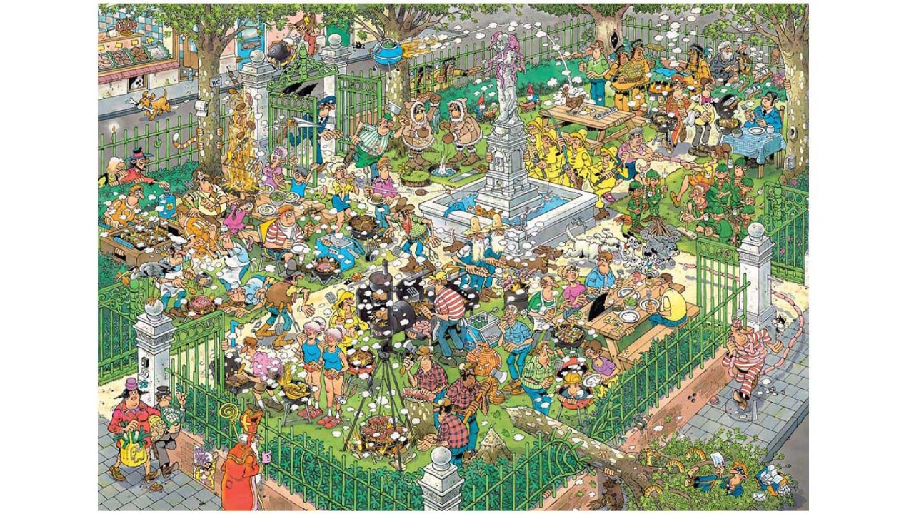 Fie că ești un jucător de puzzle experimentat sau nou în lumea lui Jan van Haasteren, „Petrecerea la grătar” oferă o grămadă de chicoteli, detalii ascunse și ore întregi de divertisment.