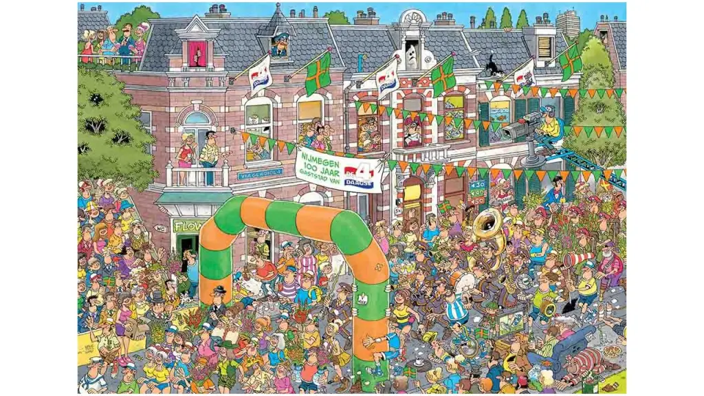 Asamblați o scenă încântător de haotică din Marșurile de 4 Zile de la Nijmegen cu acest puzzle Jumbo Jan van Haasteren!