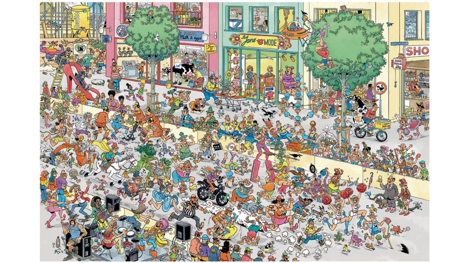 Descoperă toate detaliile amuzante și surprizele ascunse de Jan van Haasteren în acest puzzle.