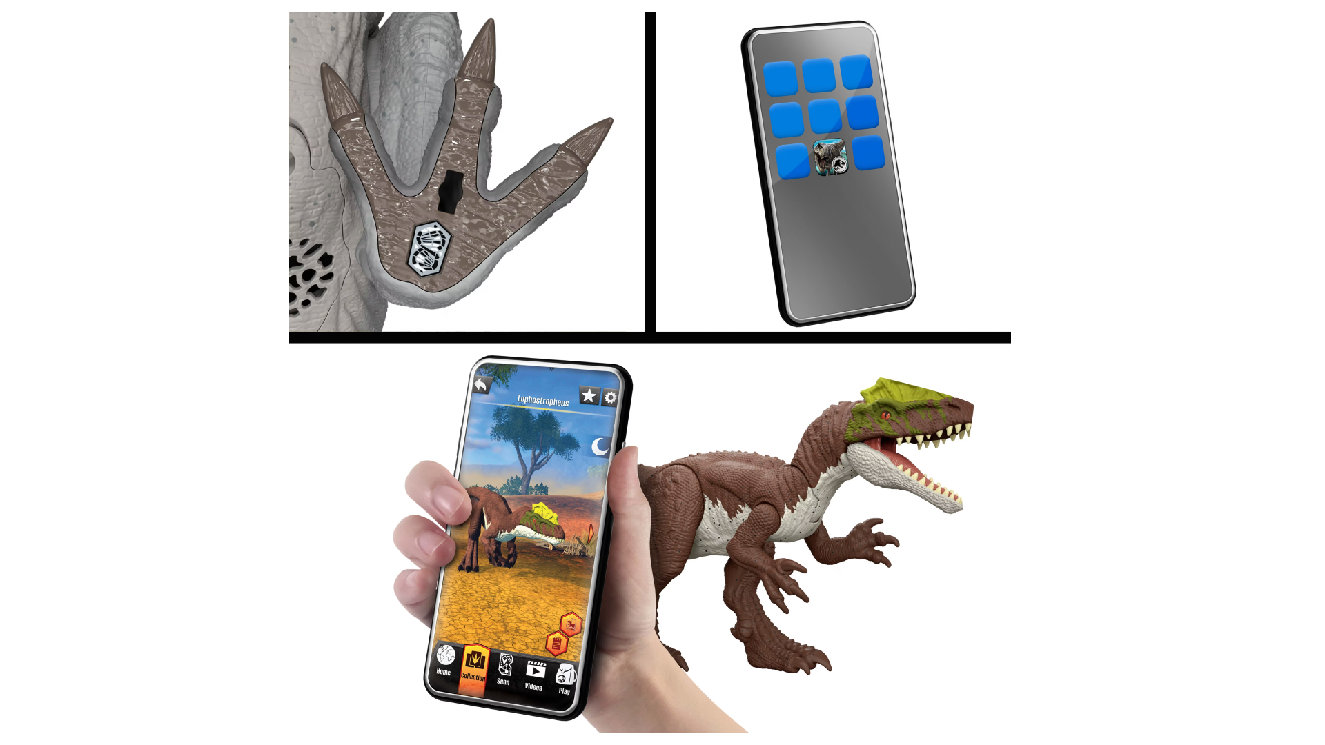 Scanați codul de urmărire de pe piciorul dinozaurului în aplicația gratuită Jurassic World Play cu un dispozitiv inteligent compatibil pentru a debloca o versiune digitală a dinozaurului și a juca jocul extrem de distractiv de a concura cu diverse vehicule pe uscat, în aer și pe mare.