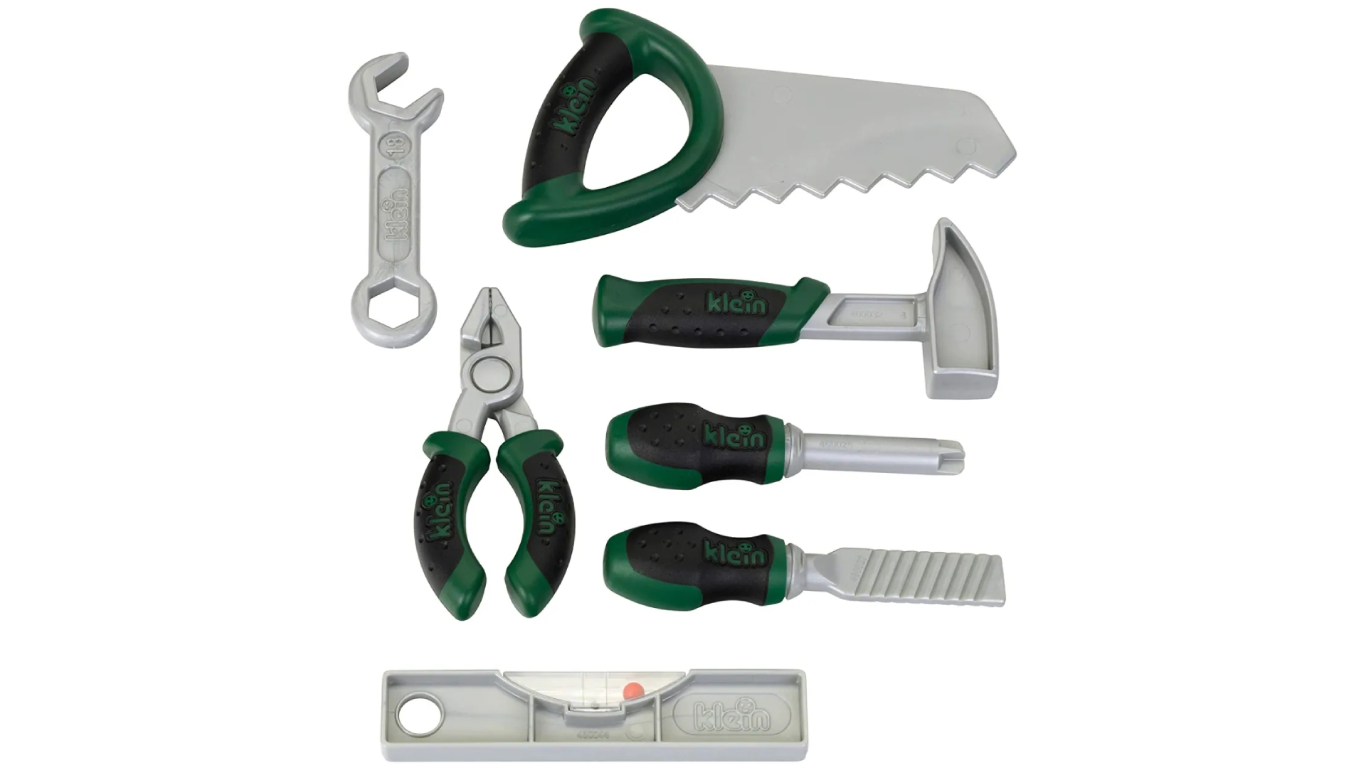 Inclus în set: ferăstrău, șurubelniță, pilă, nivelă, clește, ciocan și cheie. Design original Bosch.