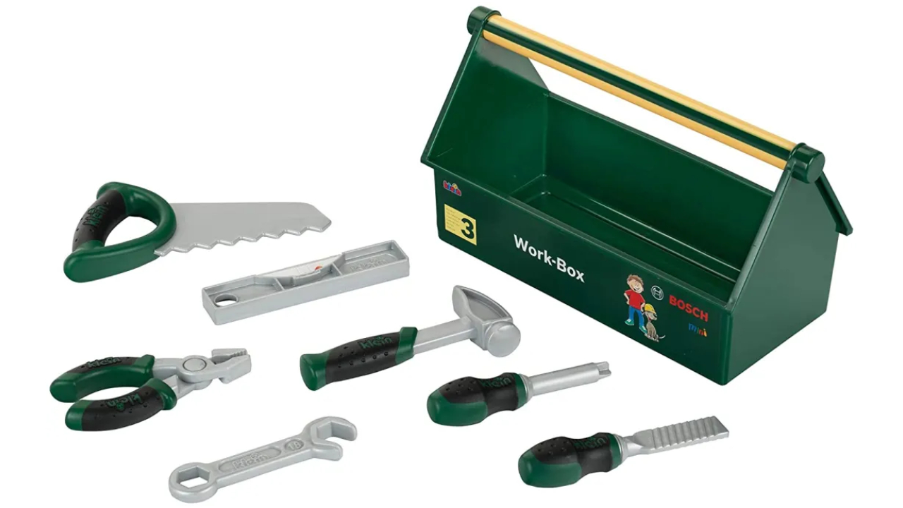 Cutie de scule pentru copii cu scule de jucărie Bosch mini.