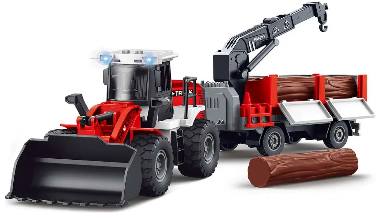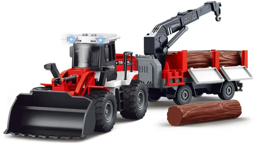 Echipat cu o cupă frontală și o remorcă detașabilă, acest set este gata să abordeze orice șantier imaginar. Remorca este o minune în sine, având o macara și trei bușteni robuști, permițându-le celor mici să-și exerseze abilitățile de încărcare și descărcare.