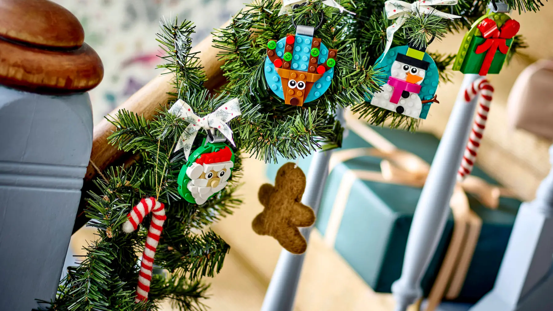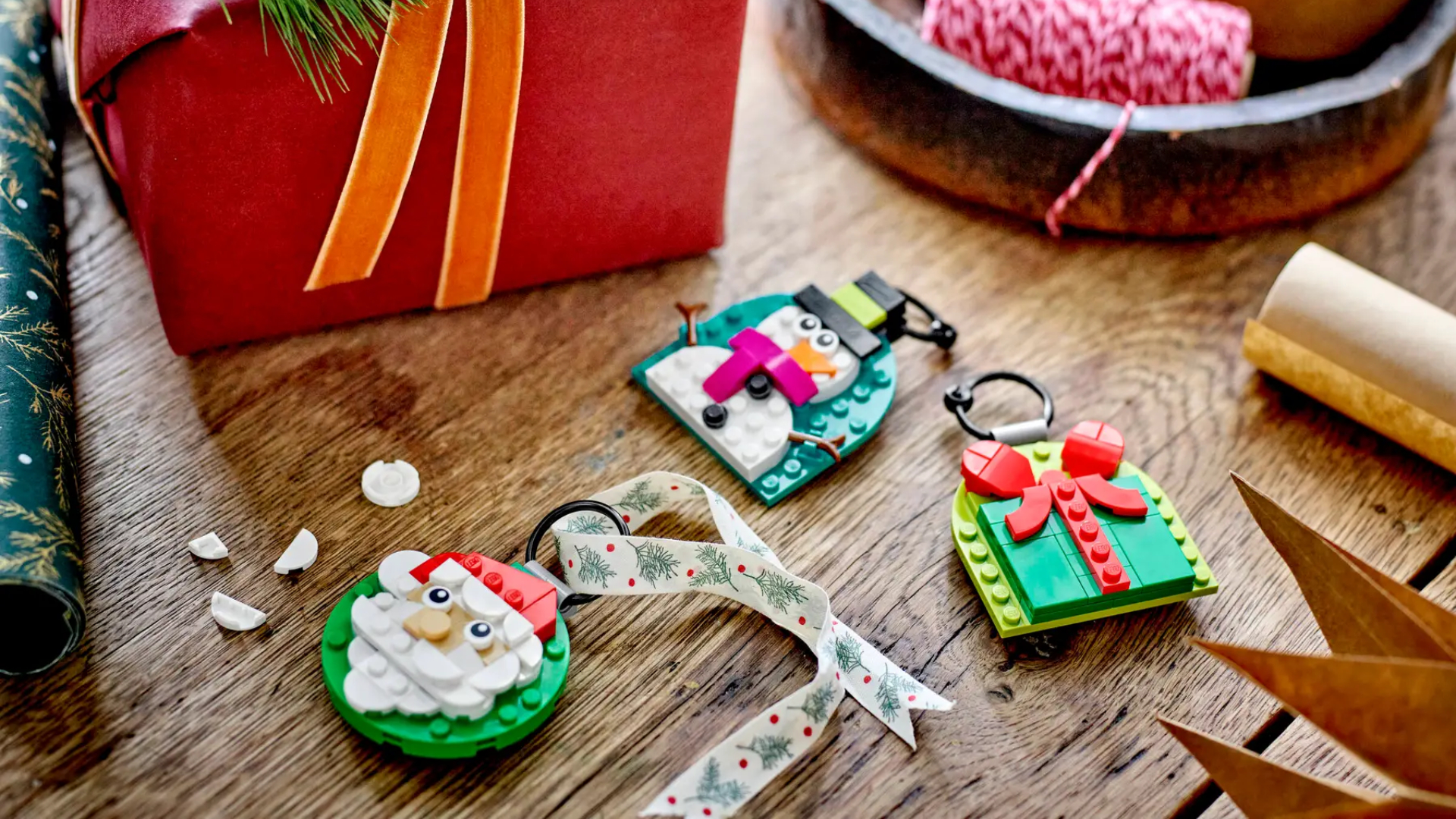 După ce ornamentele sunt gata, agățați-le în brad, folosiți-le pentru a personaliza cadouri sau expuneți-le cu alte decorațiuni de Crăciun LEGO (vândute separat) pentru a crea un aranjament festiv atrăgător din cărămizi.