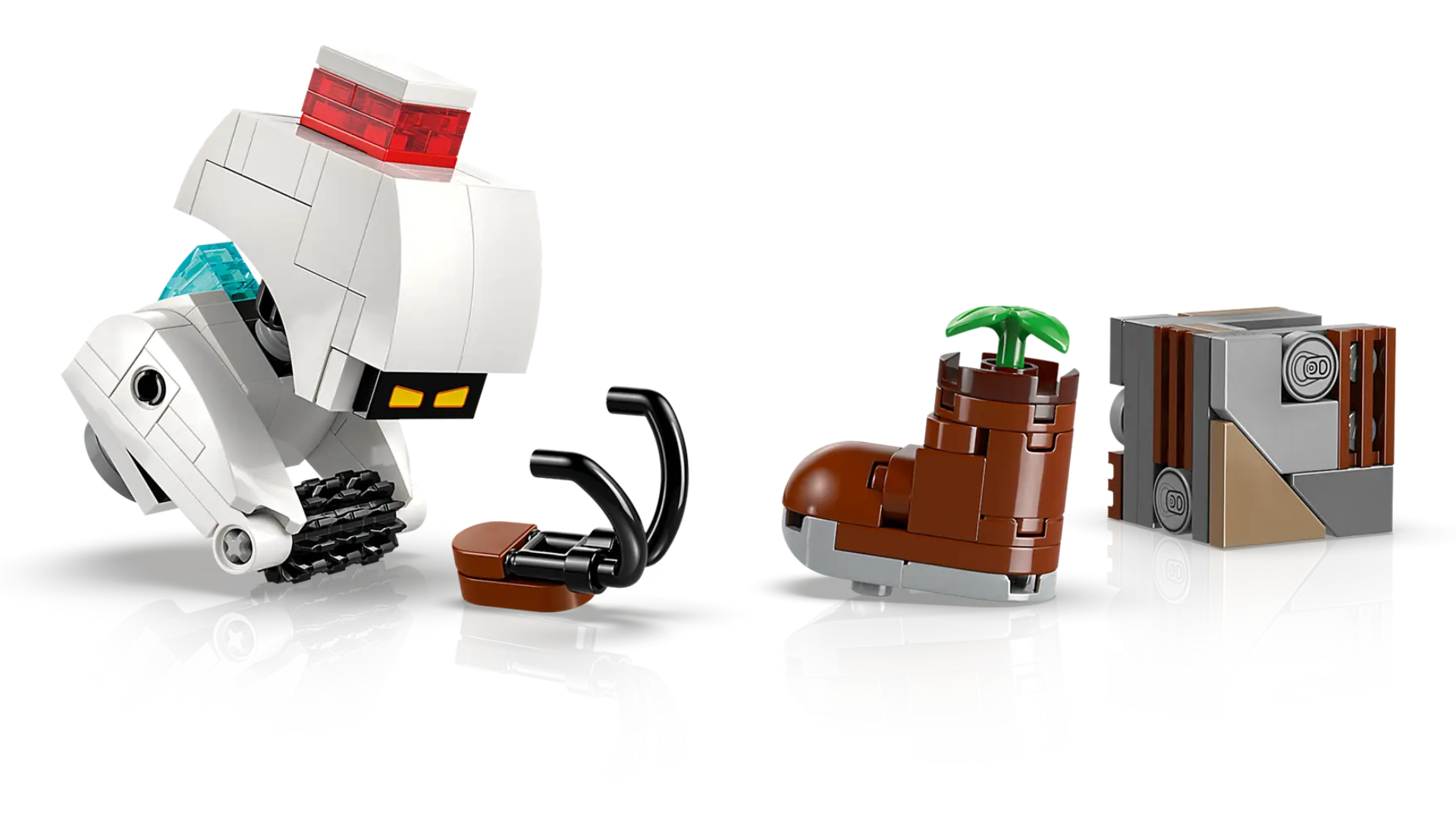 Setul construibil conține 4 personaje LEGO Disney: WALL-E, EVE, M-O și Hal, plus detalii atent selectate, inclusiv planta dintr-o cizmă din filmul de animație.