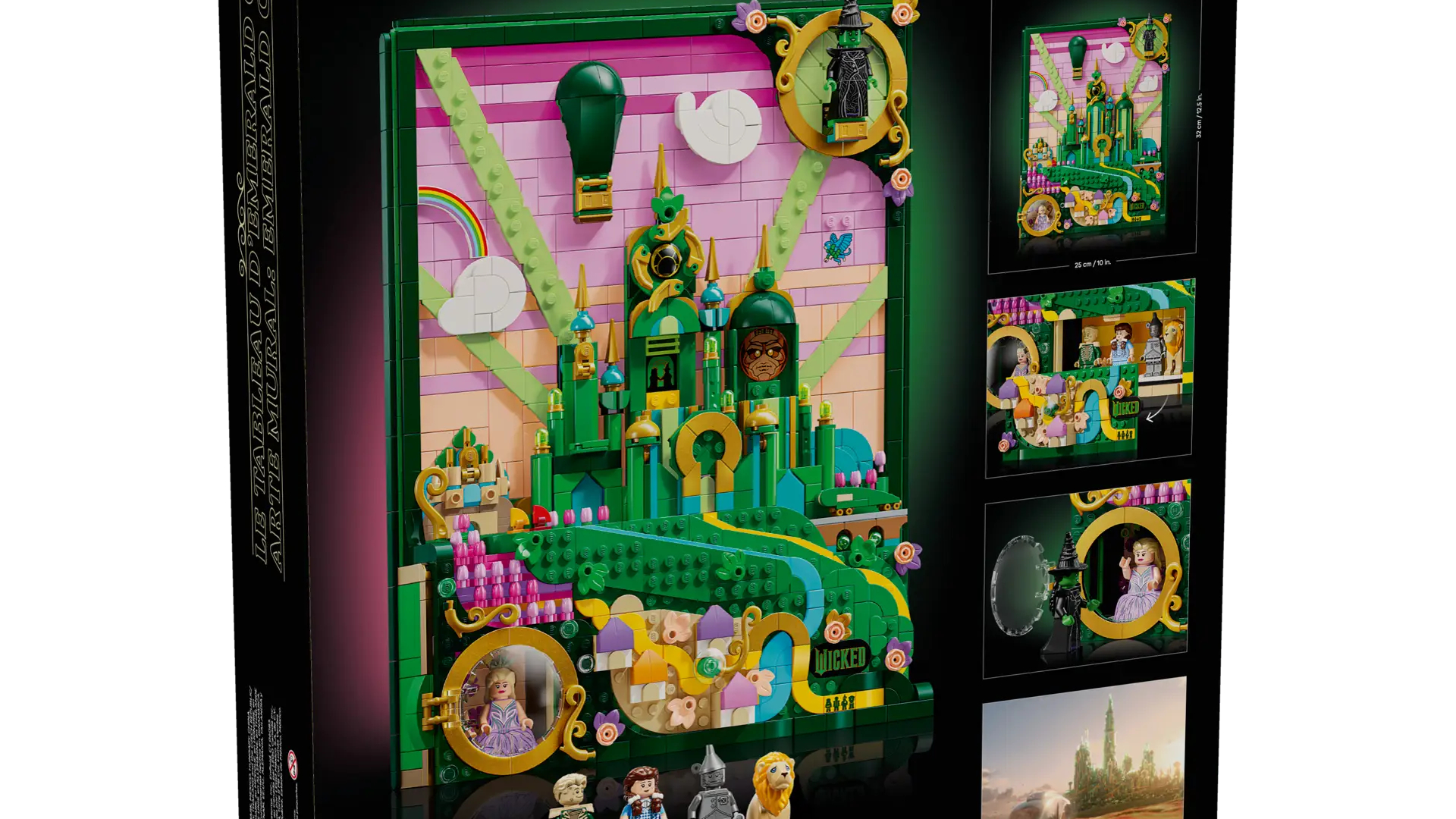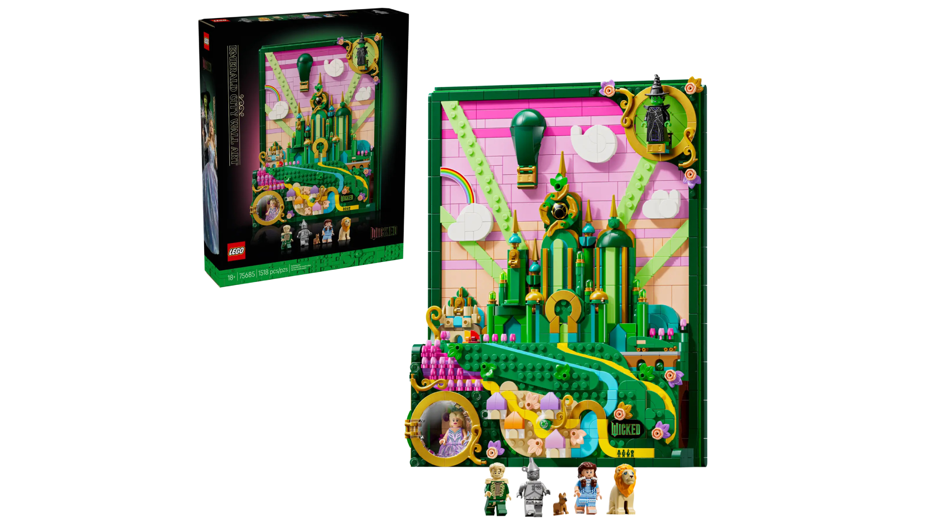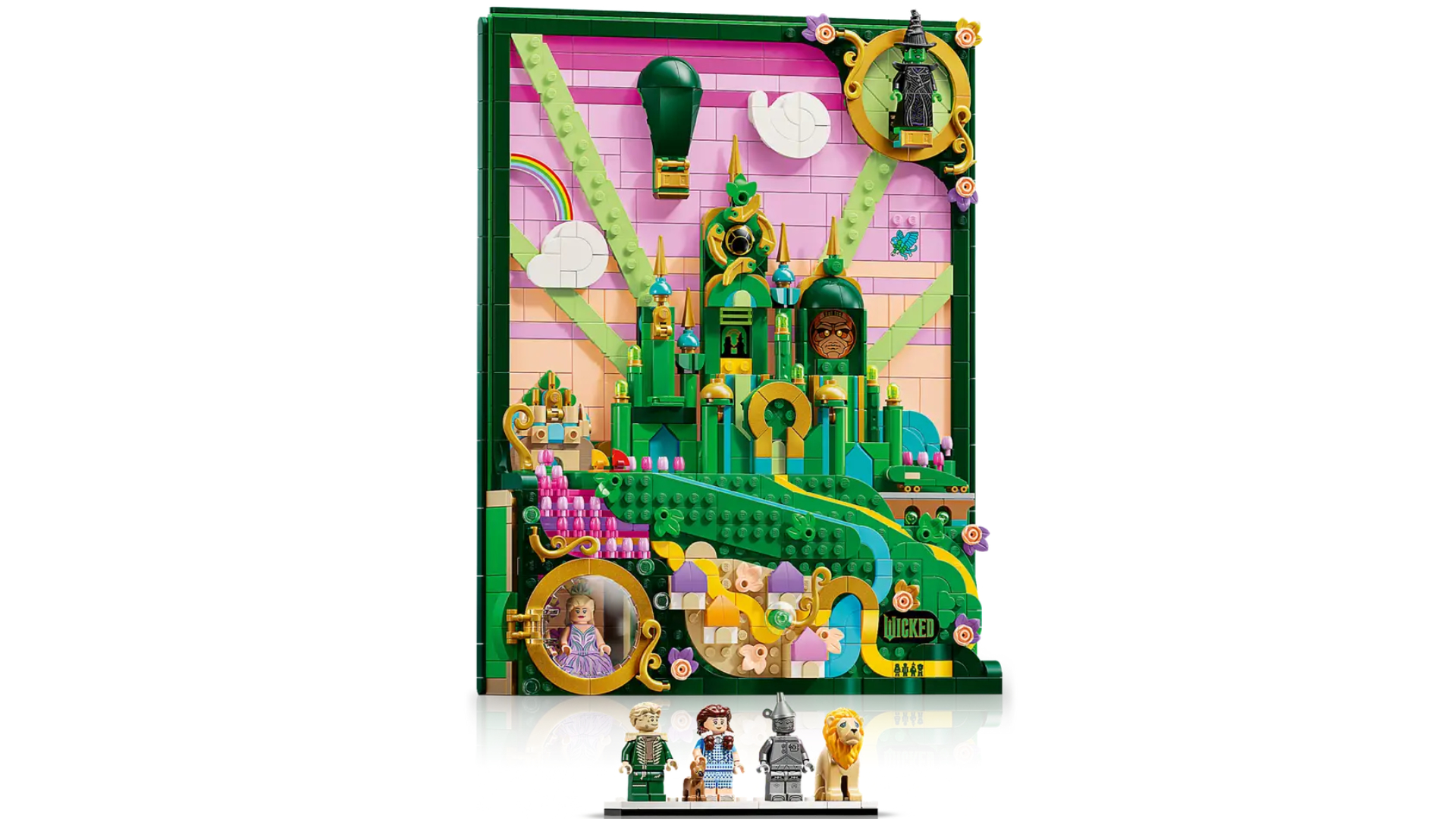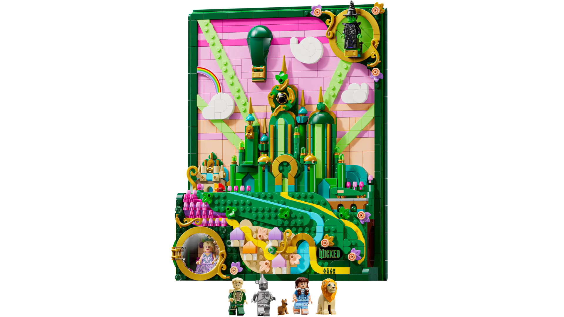 Decorează-ți casa cu momente magice din filme cu setul colorat de tablouri murale LEGO Wicked Emerald City.