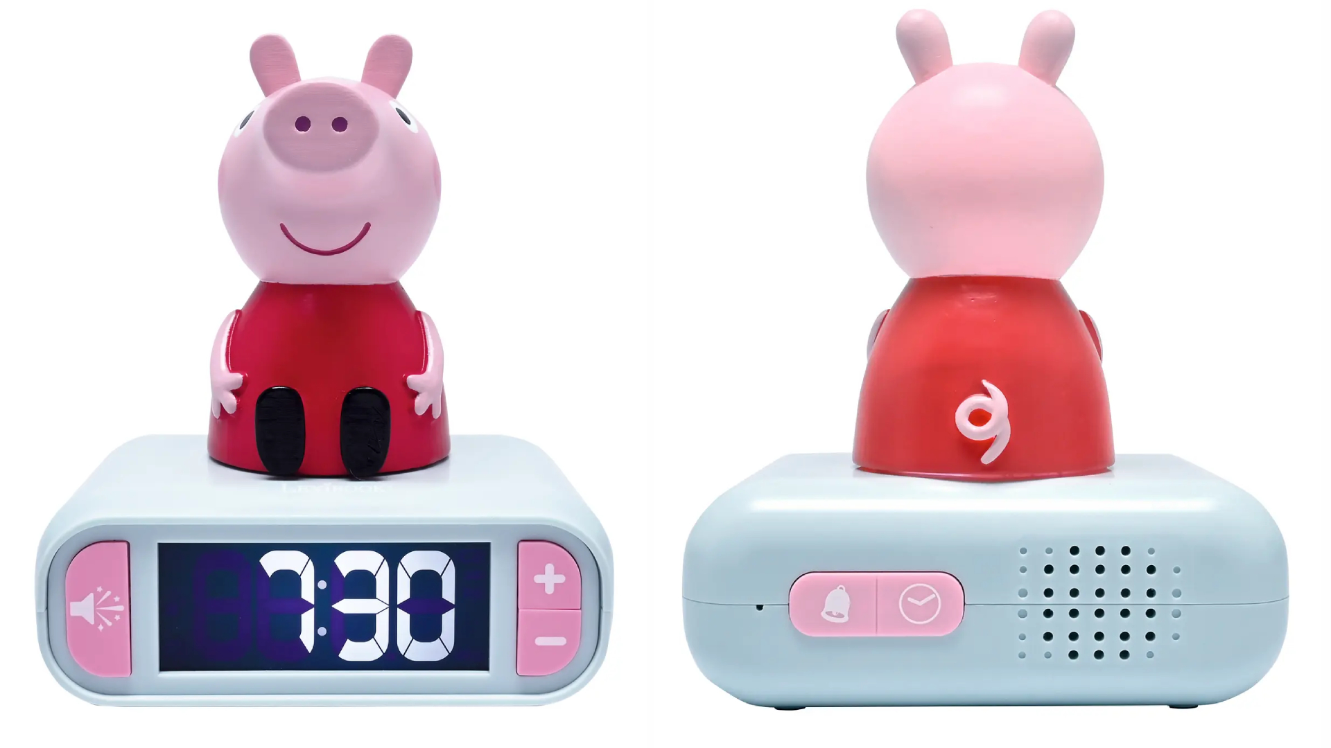 Alarmă cu o selecție de tonuri de apel inspirate de Peppa Pig.