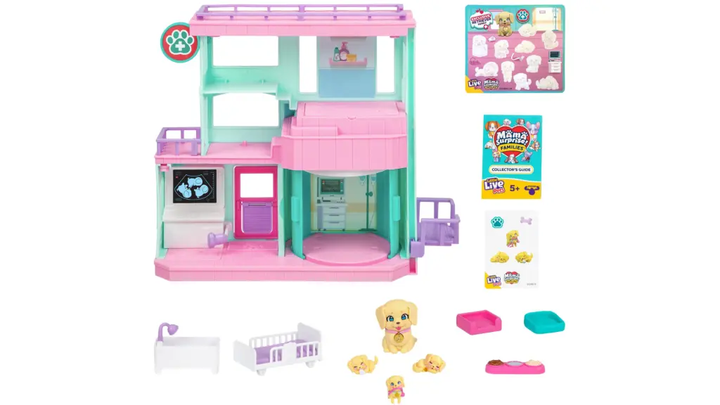 Setul de joacă este super-interactiv, cu uși pliante, un lift și chiar o zonă de baie unde poți spăla cățelușii și descoperi caracteristicile lor secrete la naștere.