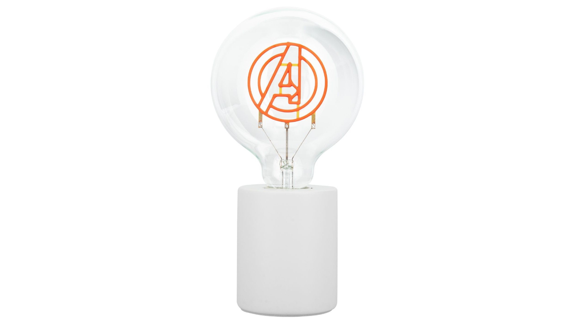 Becul său decorativ LED E27 are un filament în formă de siglă Avengers, care luminează cu o strălucire roșie distractivă.
