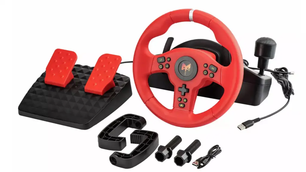 Așezați-vă la volan și transformați configurația dvs. de jocuri într-un cockpit de curse de mare viteză cu kitul Maxx Tech Arcade Racing Wheel — accesoriul suprem pentru jucătorii care doresc viteză și precizie captivante.