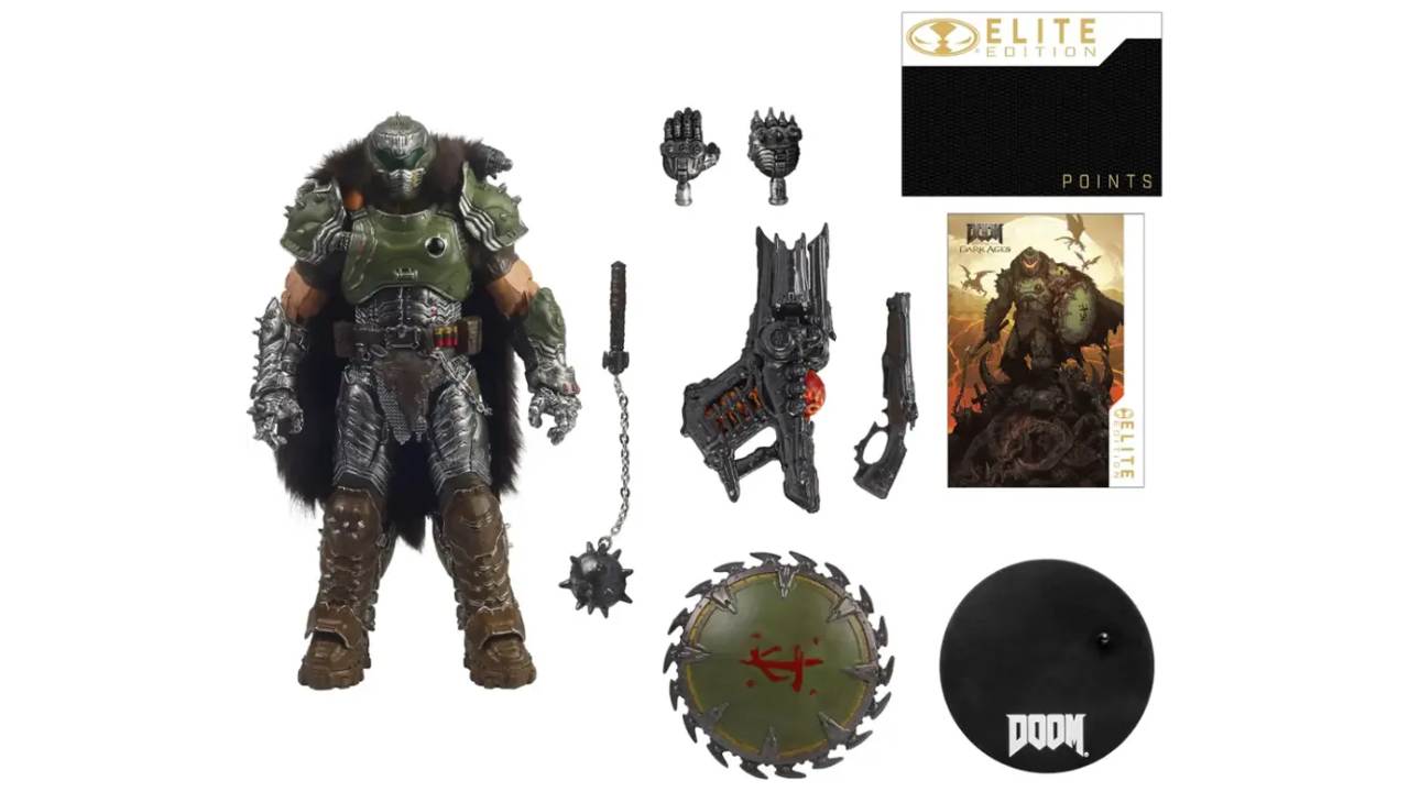 Prezentat în ambalajul McFarlane Elite Edition cu accente aurii. Aceasta figurina este un obiect de colectie inedit special conceput pentru fanii DOOM The Dark Ages.