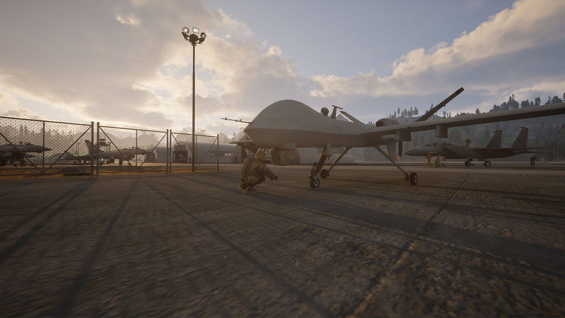 - Apărare prin Logistică: Contracarați amenințările cu drone și sol folosind lansatoare de apărare punctuală și mitraliere grele montate.