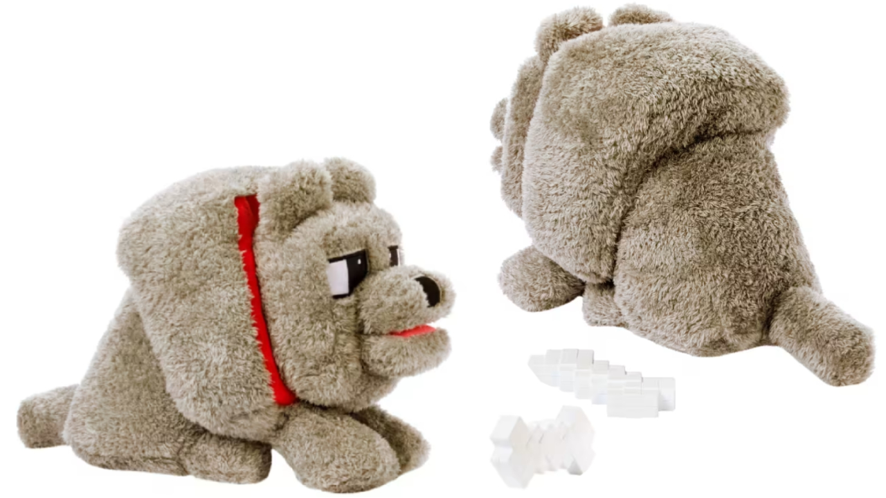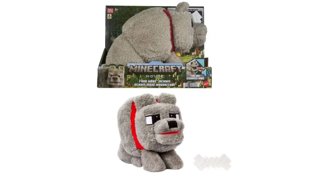 Gata pentru un nou cel mai bun prieten, jucăria de pluș interactivă Dennis lupul este un cadou distractiv, cu tematică de jocuri video, pentru fanii filmului și iubitorii de Minecraft.