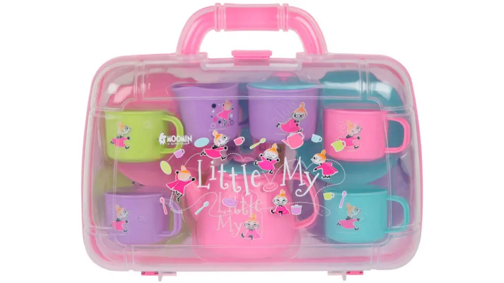 Setul este decorat cu motive de la Mumini, mai precis de la Micul Meu, și este realizat în diferite culori frumoase violet, verde, turcoaz și roz.