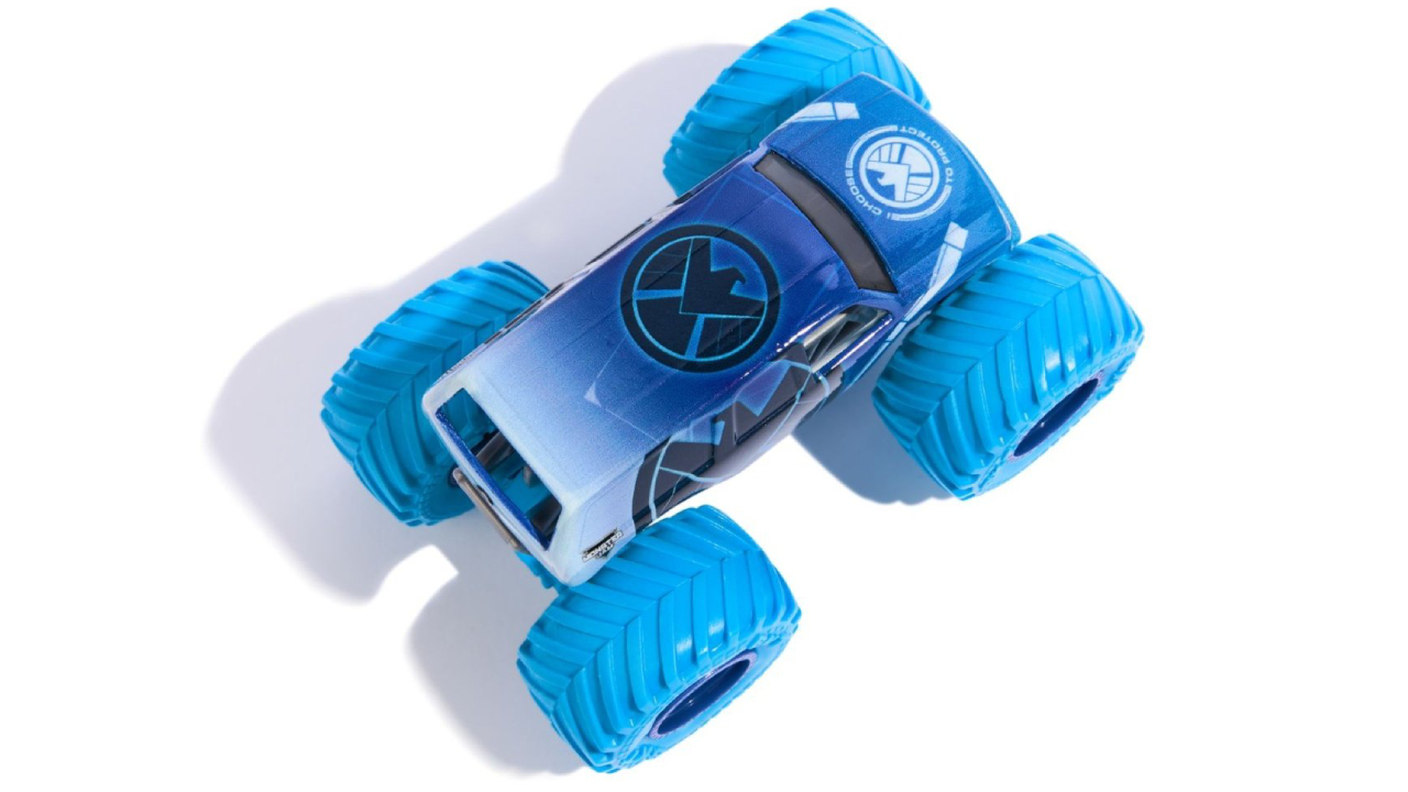 Monster Jam 1:64 Marvel Shield aduce pe pistă spiritul curajos al lui Captain America, într-un monster truck cu un design inspirat de celebrul său scut.