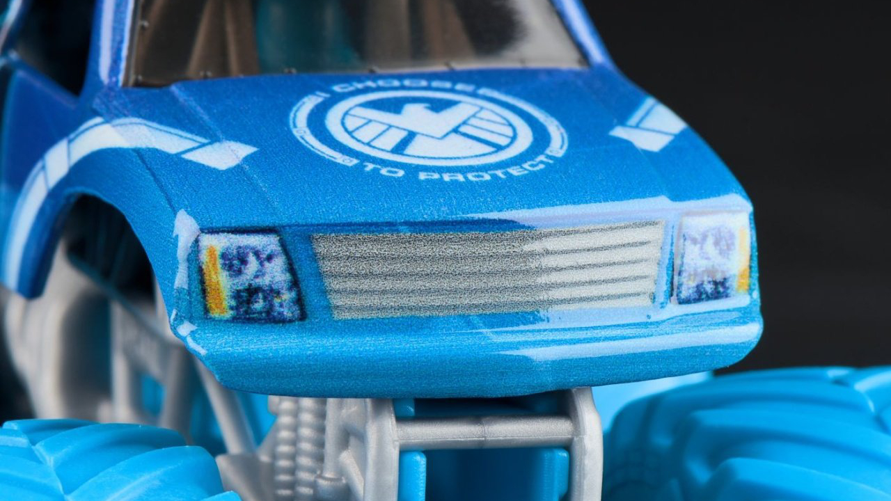 Designul compact, la scară 1:64, îl face ușor de manevrat și perfect pentru joacă oriunde. Este parte dintr-o colecție specială, combinând spectaculozitatea Monster Jam cu eroismul universului Marvel.