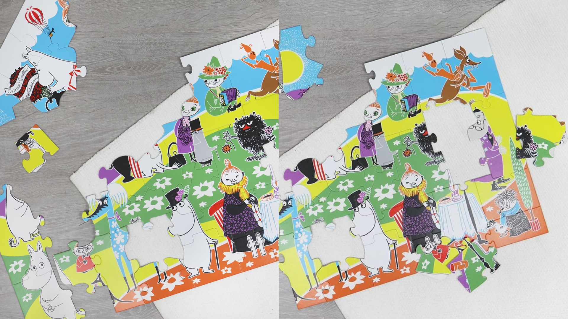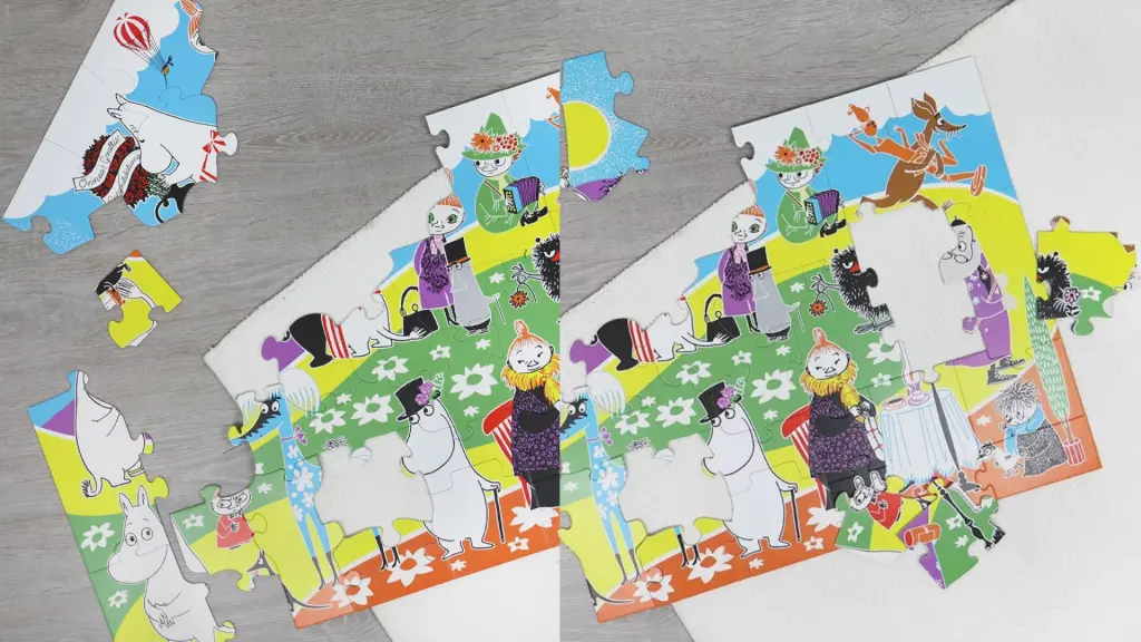 Acest puzzle este un joc de asamblat cu tematică Moomin, perfect pentru copii sau fani ai celebrelor personaje din Valea Moominilor.