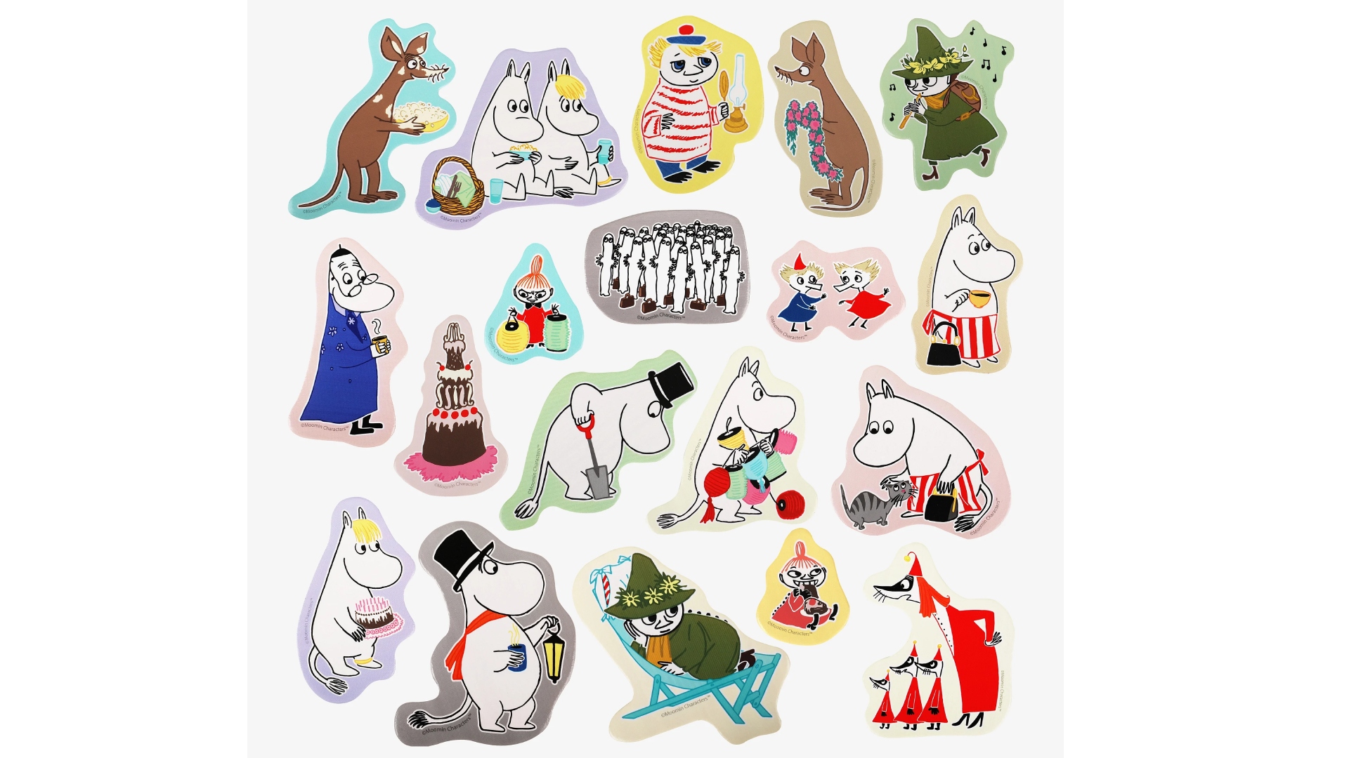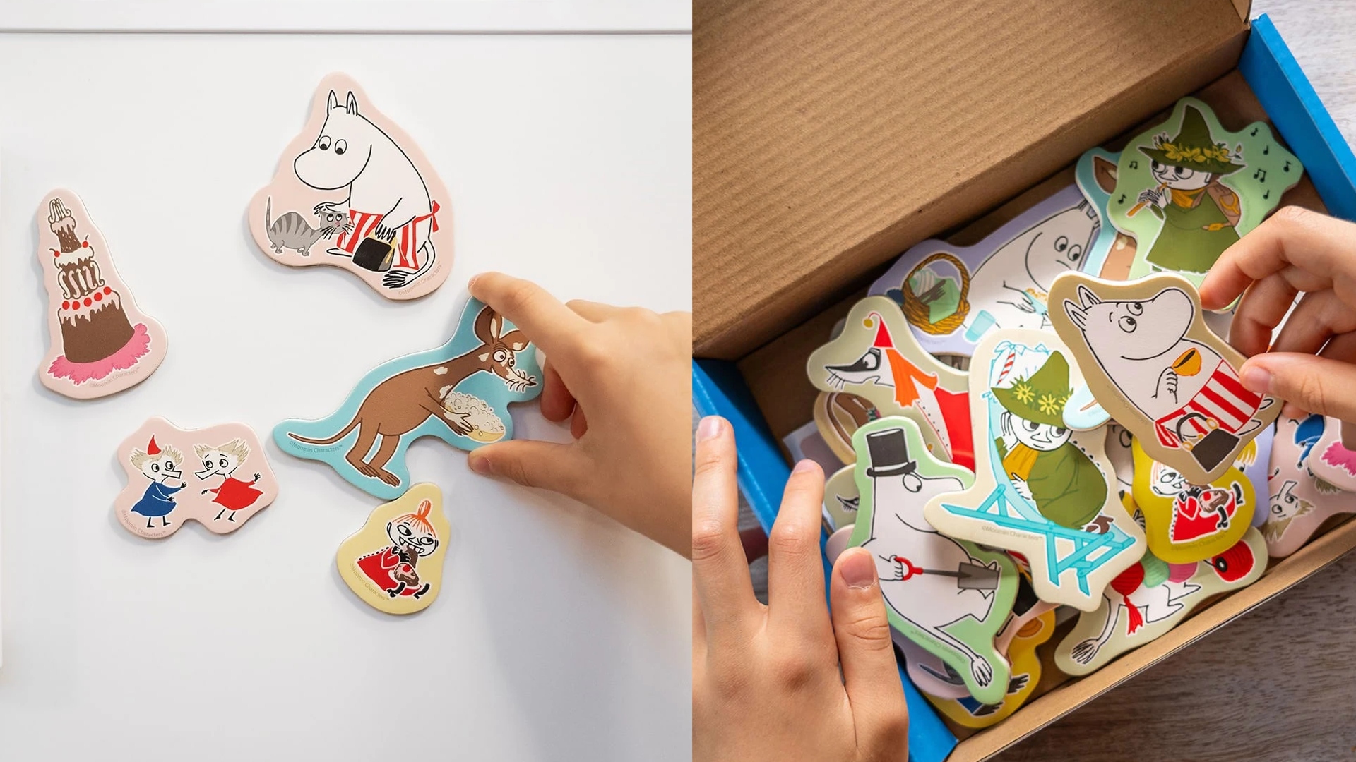 Setul este format din piese magnetice colorate cu personaje îndrăgite precum Moomin, Snorkmaiden și Little My, care se lipesc ușor de fundalurile incluse.