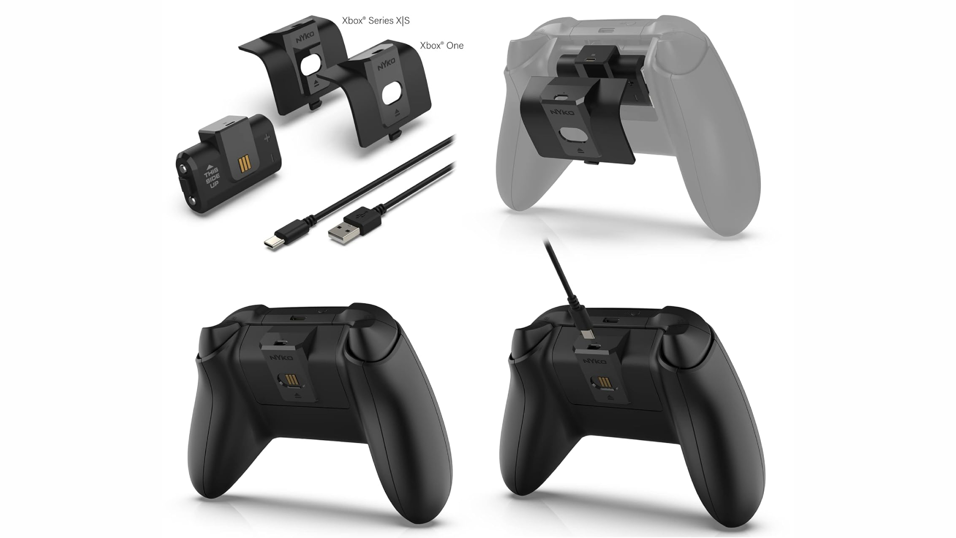 Joacă și reîncarcă simultan bateria controlerului wireless Xbox Series X și Xbox One cu ajutorul inovatorului Power Kit de la Nyko.