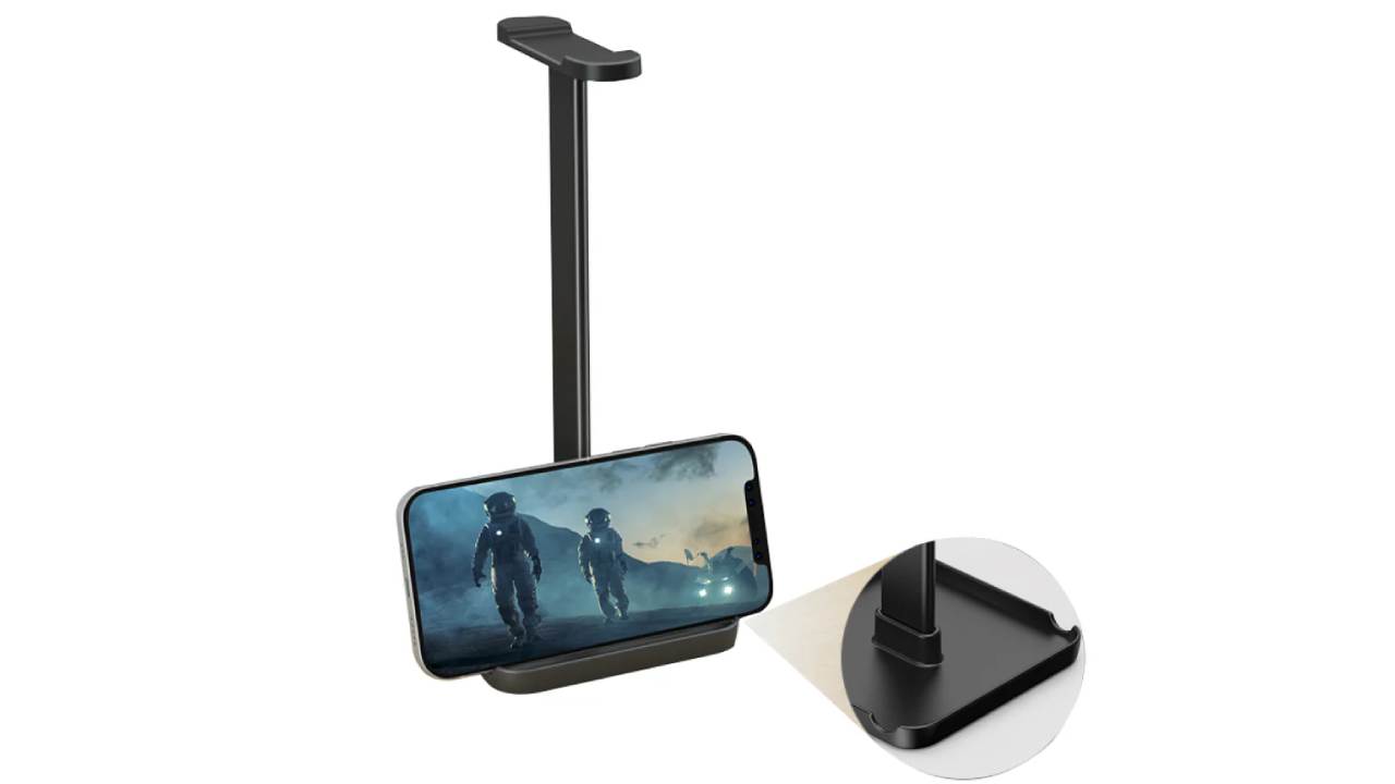Acest suport pentru căști vă permite să vă depozitați căștile și să vă țineți telefonul.