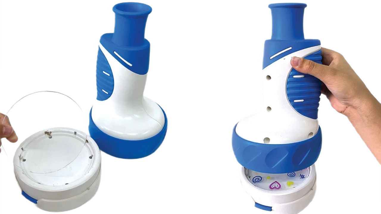 După ce capodopera lor este finalizată, trebuie doar să introducă discul în caleidoscop și să urmărească cum desenele lor se transformă în sute de modele fascinante și colorate.